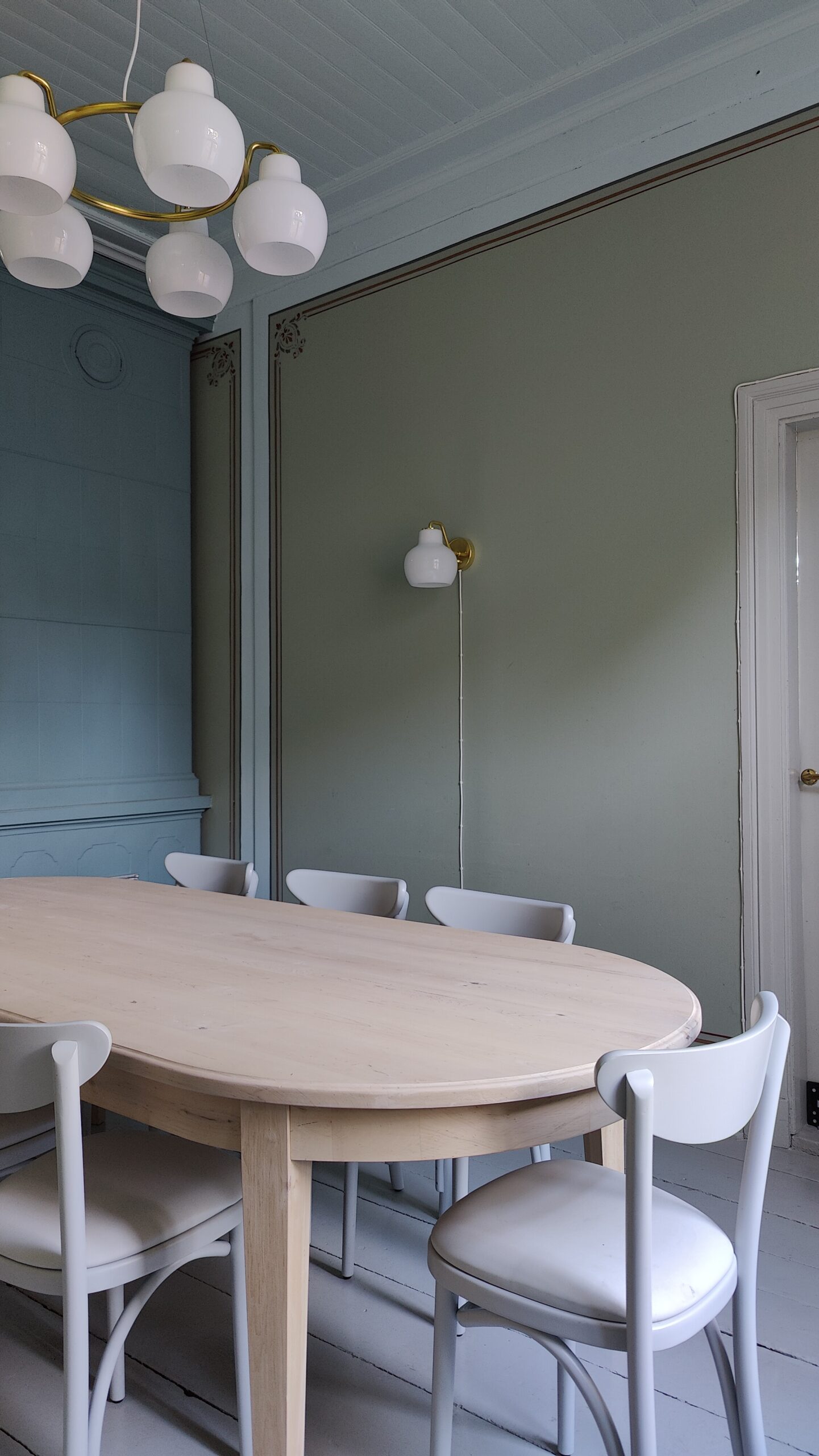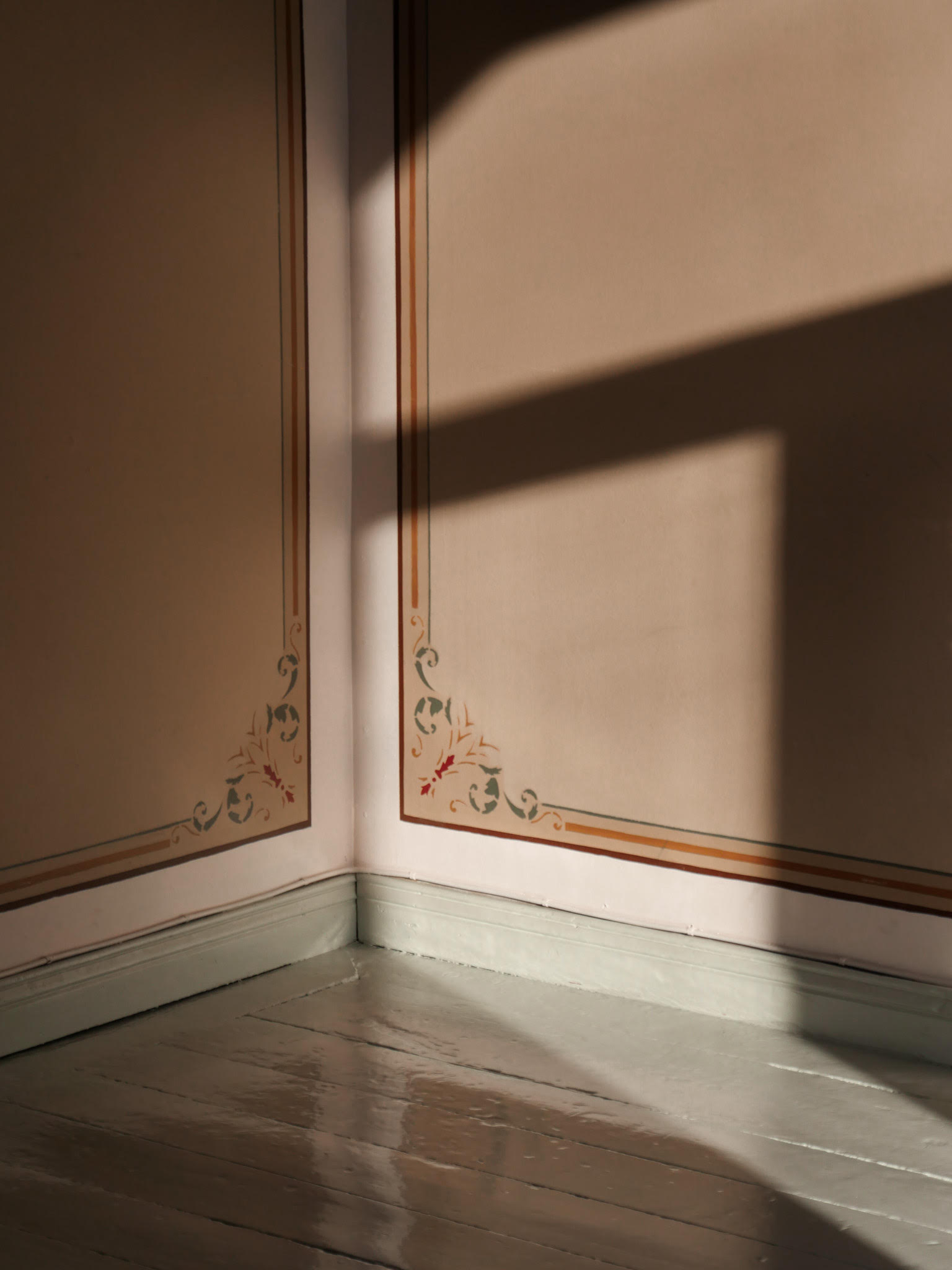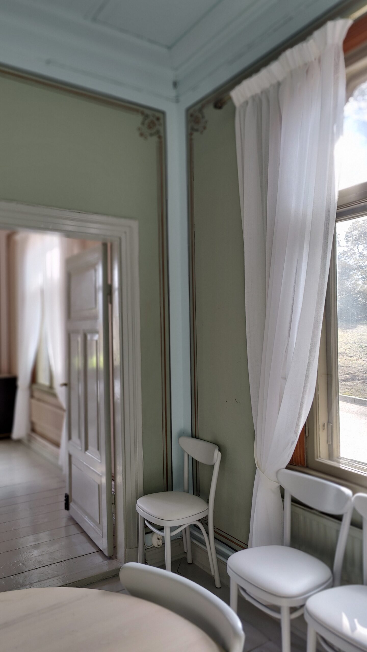 Rakennuksen vanhat leveät lankkulattiat olivat osittain niin pahoin kuluneet, että hiominen ei ollut enää mahdollinen. Vanha lattia päätettiin kuitenkin suojella ja rakentaa lattian päälle uusi vastaava. Lattialankut maalattiin perinteisellä pellavaöljymaalilla alimmista kerroksista löytyneen värimallin mukaan. Klassiset kalusteet, miellyttävä valaistus ja viihtyisyyttä luovat tekstiilit sekä sisutuksen detaljit sovitettiin tyyliltään olemassa olevaan interiööriin.